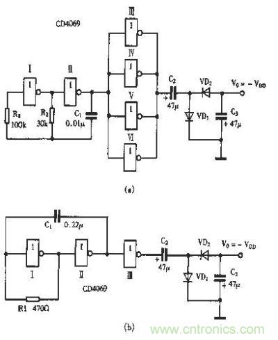 【導(dǎo)讀】電子設(shè)備中常需要用一組功率不很大的負(fù)電源,如果另設(shè)計(jì)一組電源比較浪費(fèi),此時可用CD4069 反相器構(gòu)成負(fù)電源發(fā)生器,以滿足設(shè)備系統(tǒng)的需要。