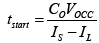 在啟動(dòng)開始時(shí),輸出電容器的平均充電電流為正值,充電電流等于(IS-IL),如等式1所示。在VO上升至VOCC之前,輔助匝電壓低于VDD,此時(shí)CDD無(wú)法通過(guò)輔助匝充電。但在此期間,CDD會(huì)被Irun和柵極驅(qū)動(dòng)電流放電。如果 VDD低于VDD(off),UCC28700器件就會(huì)關(guān)斷。為確保器件順利啟動(dòng),在ta內(nèi)VDD必須大于VDD(off)。在等式8和等式9中,應(yīng)用了一個(gè)臨界條件。Tstart是VO從0上升至VOCC的時(shí)間。等式2是VOCC和VDD(off)的關(guān)系。在等式8 中,有1mA的估計(jì)柵極驅(qū)動(dòng)電流,而且為VDD添加了1V的裕度。VCST是芯片選擇閾值電壓。在啟動(dòng)開始時(shí),UCC28700 VS引腳上的電壓為低,因此VCST保持其最大值。