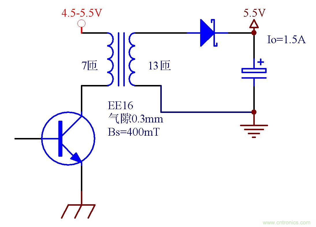 (1)變壓器按照高輸入、電壓、寬脈沖進行設(shè)計,使磁心工作在低磁通密度及繞上更多的初級繞組。這種方法的缺點是降低變壓器的效率,增大變壓器的體積重量。
