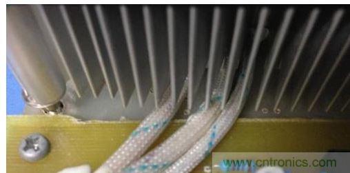 然后把IRF540N的三個管腳使用三根線焊接出來,注意套上熱縮管或者玻纖管絕緣。