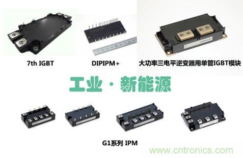 針對伺服驅(qū)動(dòng)器、光伏逆變器等工業(yè)市場需求,三菱電機(jī)此次重點(diǎn)推介整流逆變制動(dòng)一體化模塊DIPIPM+,G1系列IPM,第7代IGBT以及大功率三電平逆變器用單管IGBT模塊四種產(chǎn)品。憑借良好性能獲得市場青睞的第7代IGBT,兩種封裝方式兼容了現(xiàn)有市場主流產(chǎn)品封裝,并采用預(yù)涂熱界面材料(PC-TIM)有效降低了50%接觸熱阻。同樣備受期待的產(chǎn)品,還有今年全新開發(fā)的“G1系列IPM”。它采用第7代 IGBT和FWDi芯片,配備多種額定電流對應(yīng)廣泛用途的