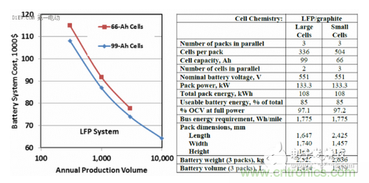 美國(guó)阿貢國(guó)家實(shí)驗(yàn)室研究了66Ah、99Ah磷酸亞鐵鋰LFP電池成本跟產(chǎn)量的關(guān)系(圖3),研究顯示兩種電池的成本隨著產(chǎn)量的增加下降趨勢(shì)基本一致,但是大容量的電池成本比小容量的電池成本更低一些。