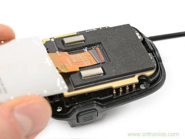 只有4個 Torx 螺絲固定自行車計算機的蓋子與 160 × 128 像素的 TFT 屏幕用簡單的 ZIF 連接器連接。