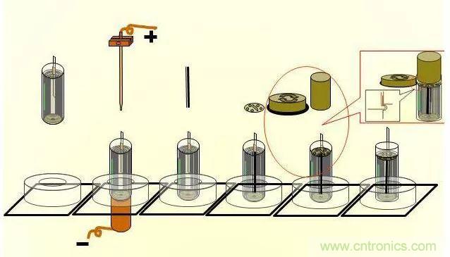 組裝后的電池,被給予一定的電流,使電池正負極活性物質(zhì)被激發(fā),最后使電池具有放電能力的電化學過程稱為化成,電池只有經(jīng)過化成后才能作為電源使用。