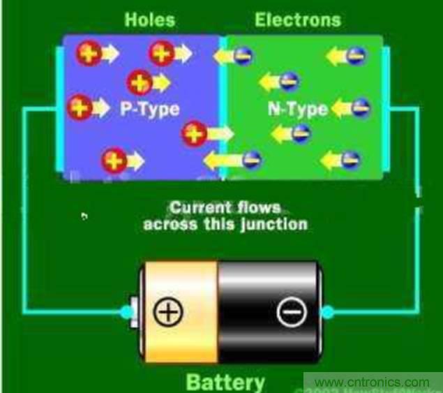 為了除掉損耗區(qū)就必須使N型向P型移動和空穴應反向移動。為了達到目的,連接二極管N型一方到電流的負極和P型就連接到電流的正極。