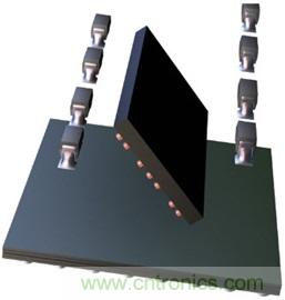 圖3. LTC3376倒裝封裝(a)引腳球柵陣列,(b)銅柱在裸片下方以及(c)集成旁路電容。