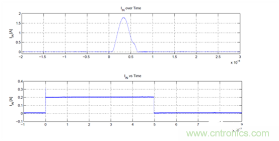 圖 4:1.8A 500ns 電流脈沖(上),200mA 5ms 電流脈沖(下)