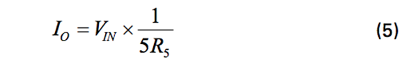 在公式1中,負載電阻影響輸出電流,但如果我們設(shè)置R1 = R3 和R2+ R5 = R4,則方程簡化為: