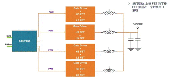 在大型數(shù)據(jù)中心或服務(wù)器中,隨著處理器的演進,晶體管數(shù)量越來越多,需要越來越高的輸出電流。此外,為了控制整個系統(tǒng)的運行效率,使得設(shè)備能在空閑時以更低電流運行,在需要時再按全功率運行,服務(wù)器電源需具有大電流、低電壓,并且對電壓精度、紋波、快速瞬態(tài)響應(yīng)都有比較高的要求,因此,目前多相電源成為服務(wù)器供電的主流方案。