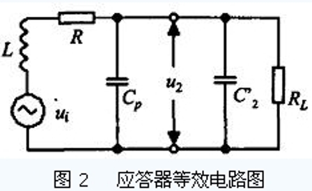 當RFID 的線圈天線進入讀寫器產(chǎn)生的交變磁場中,RFID 天線與讀寫器天線之間的相互作用就類似于變壓器,兩者的線圈相當于變壓器的初級線圈和次級線圈. 由RFID 的線圈天線形成的諧振回路如圖2所示,它包括RFID 天線的線圈電感L 、寄生電容Cp和并聯(lián)電容C2′,其諧振頻率為: