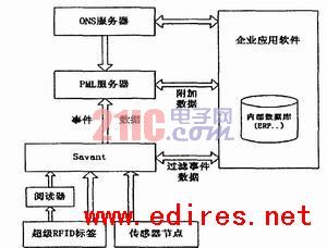 在圖3中,事件管理系統(tǒng)應用在EdgeSavant(ES)上采集標簽解讀事件,它與解讀器應用程序通信,管理解讀器發(fā)送的事件流。EMS體系結(jié)構(gòu)中的“解讀適配器”和“解讀器接口”可看作一個通用的接口,對于EdgeSavant來講,由于解讀適配器直接或間接的與解讀器進行通訊,并收集解讀器探測到的事件,然后將這些事件寫入解讀器接口。對于InternalSavant來講,它是Edgesavants的父節(jié)點或上級,IS從他的下屬EdgeSavant中采集EPC數(shù)據(jù),因此“解讀適配器”和“解讀器接口”可看作是通用的網(wǎng)絡數(shù)據(jù)訪問接口。