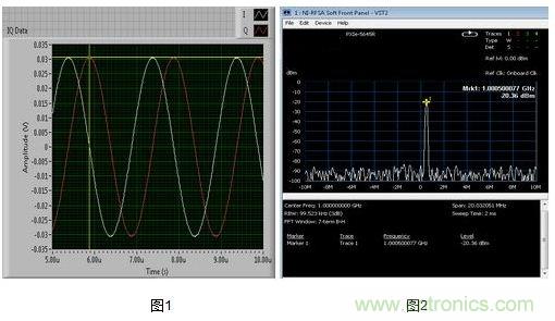 由矢量信號(hào)收發(fā)器(VST)所產(chǎn)生的單音信號(hào),其頻率與載波有500 kHz的偏差,IQ信號(hào)產(chǎn)生速率為120 MS/s,輸出功率約為-20 dBm。該信號(hào)經(jīng)由RF IN口反饋輸入至VST設(shè)備,其I/Q電平測(cè)量結(jié)果如下圖1所示,功率測(cè)量結(jié)果如圖2所示。