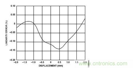 圖3. 位置線性度誤差與LVDT內(nèi)核位移的關(guān)系