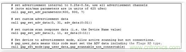 配置廣播參數(shù)包括調(diào)用Bluegiga的一些功能、數(shù)組。