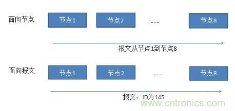 圖3.面向節(jié)點和面向報文的數(shù)據(jù)通信