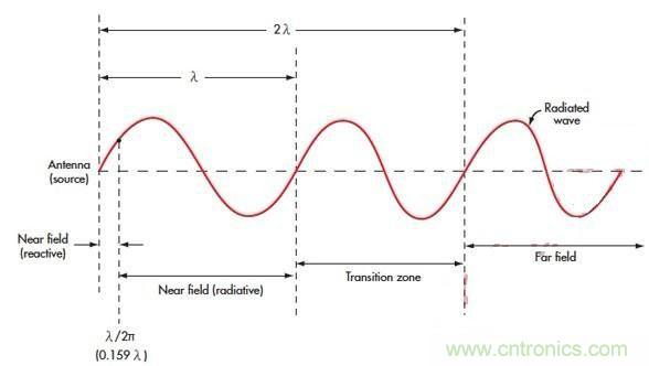 對近場似乎還沒有正式的定義——它取決于應(yīng)用本身和天線。通常,近場是指從天線開始到1個波長(λ)的距離。波長單位為米,公式如下: