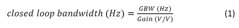 兩種體系結(jié)構(gòu)仍被用作負(fù)反饋電路中的誤差放大器,但它們所需的反饋類型有所差異。例如,您可在反相和同相增益配置中使用其中任何一種放大器。電流反饋體系結(jié)構(gòu)的一個明顯優(yōu)勢是帶寬不取決于增益。但在電壓反饋體系結(jié)構(gòu)中,隨著增益的增加,帶寬減小,如公式1所示:
