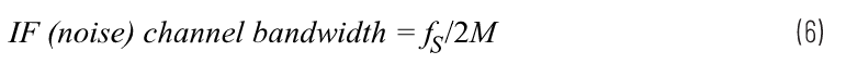 首先,使用微調(diào)NCO將在fS處采樣的數(shù)據(jù)數(shù)字下變頻到基帶(復(fù)數(shù)I/Q)。然后,使用可編程低通數(shù)字濾波器對數(shù)據(jù)流進行濾波。此預(yù)抽取數(shù)字濾波設(shè)置中頻帶寬,并且是設(shè)置接收器本底噪聲PN的兩個不同操作中的第一個。隨著中頻帶寬變小,并且濾波使寬帶噪聲衰減,帶內(nèi)積分噪聲功率會降低。