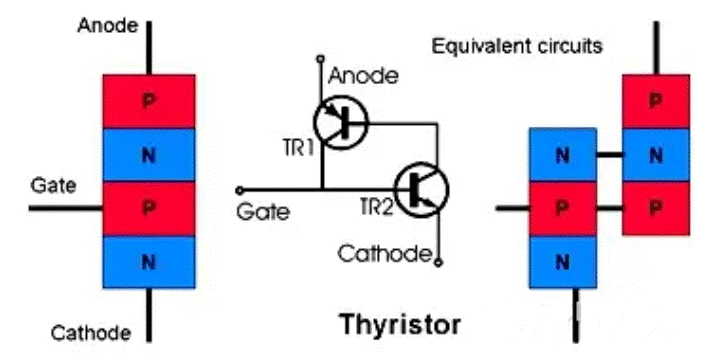 在操作中,晶閘管可被視為背靠背連接的 NPN 和 PNP 晶體管,在器件內(nèi)形成正反饋回路。發(fā)射極連接晶閘管陰極的晶體管是NPN器件,而發(fā)射極連接晶閘管陽極的晶體管是PNP器件。柵極連接到 NPN 晶體管的基極。一個(gè)晶體管的輸出被饋送到第二個(gè)晶體管的輸入,第二個(gè)晶體管的輸出又被反饋到第一個(gè)晶體管的輸入。這意味著當(dāng)電流開始流動(dòng)時(shí),它會(huì)迅速增加,直到兩個(gè)晶體管都完全導(dǎo)通或飽和。
