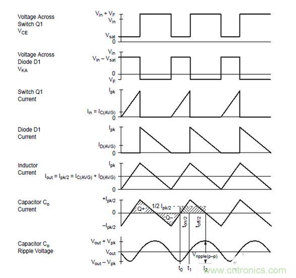 圖2:Buck電路工作在臨界模式其各個(gè)器件的波形