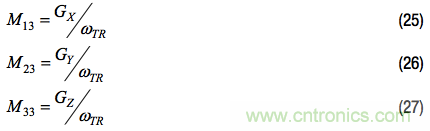 最后,繞z軸旋轉(zhuǎn)(ωX = 0, ωY = 0, ωZ = ωTR),則M13、M23和M33的關(guān)系可簡化如下: