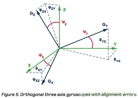 圖5:正交三軸陀螺儀的對(duì)準(zhǔn)誤差。