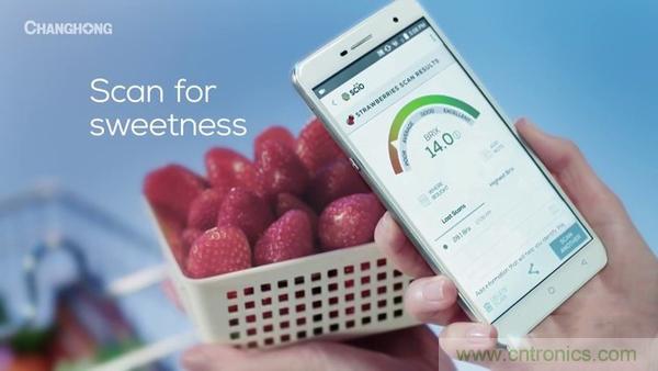 合作方ADI主要為這款手機提供光譜傳感器以及相關(guān)的算法,CP公司則負責提供APP以及成分分析數(shù)據(jù)。在功能上,可以直接使用這款手機判斷分析水果中的成分、甜度等信息。此外,它還能對更多物體進行成分分析,比如面包、肉以及藥物等。