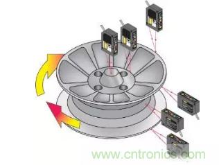 在流程的下一步驟之前驗證關(guān)鍵部件是否到位并處于正確位置是一項常見要求。光電傳感器可以輕松實現(xiàn)這一目標,最新型號甚至可以檢測零件的最小和最窄邊緣。在圖示中,兩個傳感器可以形成僅為百分之一英寸的會聚點,以精確地檢測半導體晶片的邊緣。在該示例中,傳感器不僅驗證晶片的存在,而且還可以檢測晶片是否在盒中傾斜。