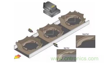 傳統(tǒng)的單光束傳感器無法檢查許多零件或組件。通常,用戶需要確定幾個部件中的任何一個或多個部件是否處于組件上的適當位置。光幕系統(tǒng)可以對整個零件進行輪廓分析,以查找丟失或放錯位置的組件。在該示例中,光幕正在檢查氣缸蓋的表面以確保在自動裝配過程中所有閥門都安置在頭部中。