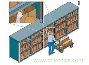 順序手動裝配中人的準確性也是防錯的一個大問題。PLC控制的“揀選”系統(tǒng)使用指示下一個要選擇的項目的燈,以及每個箱前面的光幕來驗證是否已經(jīng)采取了正確的部件。這些系統(tǒng)通過減少錯過的零件以及以錯誤順序組裝的零件來提高裝配操作的質(zhì)量百分比。除了裝配過程的防錯之外,它們還通過在裝配過程中始終驗證裝配工最后停止的位置來提高工人效率,即使在休息或停工之后也是如此。這種完全可視化的通信系統(tǒng)也是一種全球解決方案,可消除語言障礙和技術(shù)能力等培訓障礙。該圖顯示了倉庫應用程序。