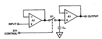 注意,在這種類型的S/H連接中,可以將輸入級接線,這樣(+)和(-)輸入端都可以連接外部選項,不過并非所有類型都能這樣做。憑借這種靈活性,S/H可以連接為(整體)反相或同相類型的S/H。應用電阻可能可用,也可能不可用。