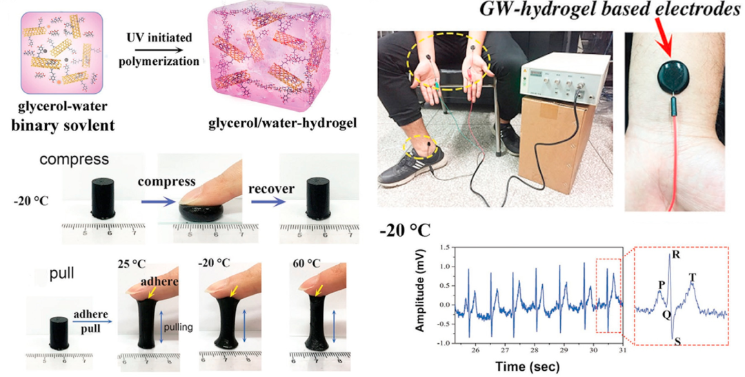 *甘油-水納米復(fù)合水凝膠應(yīng)變傳感器顯示出優(yōu)異的抗凍能力、可調(diào)節(jié)的熱響應(yīng)性和自修復(fù)性能